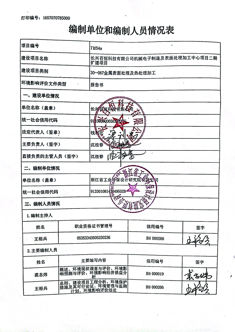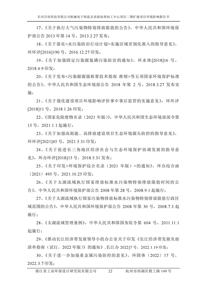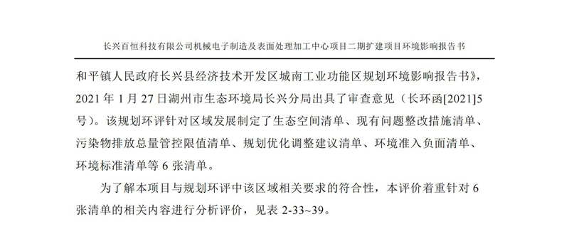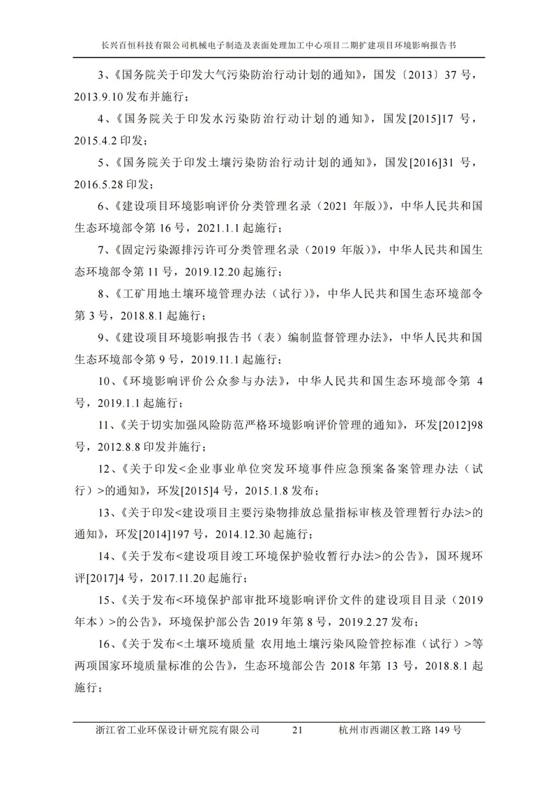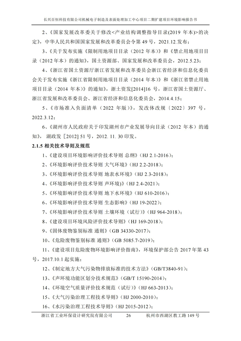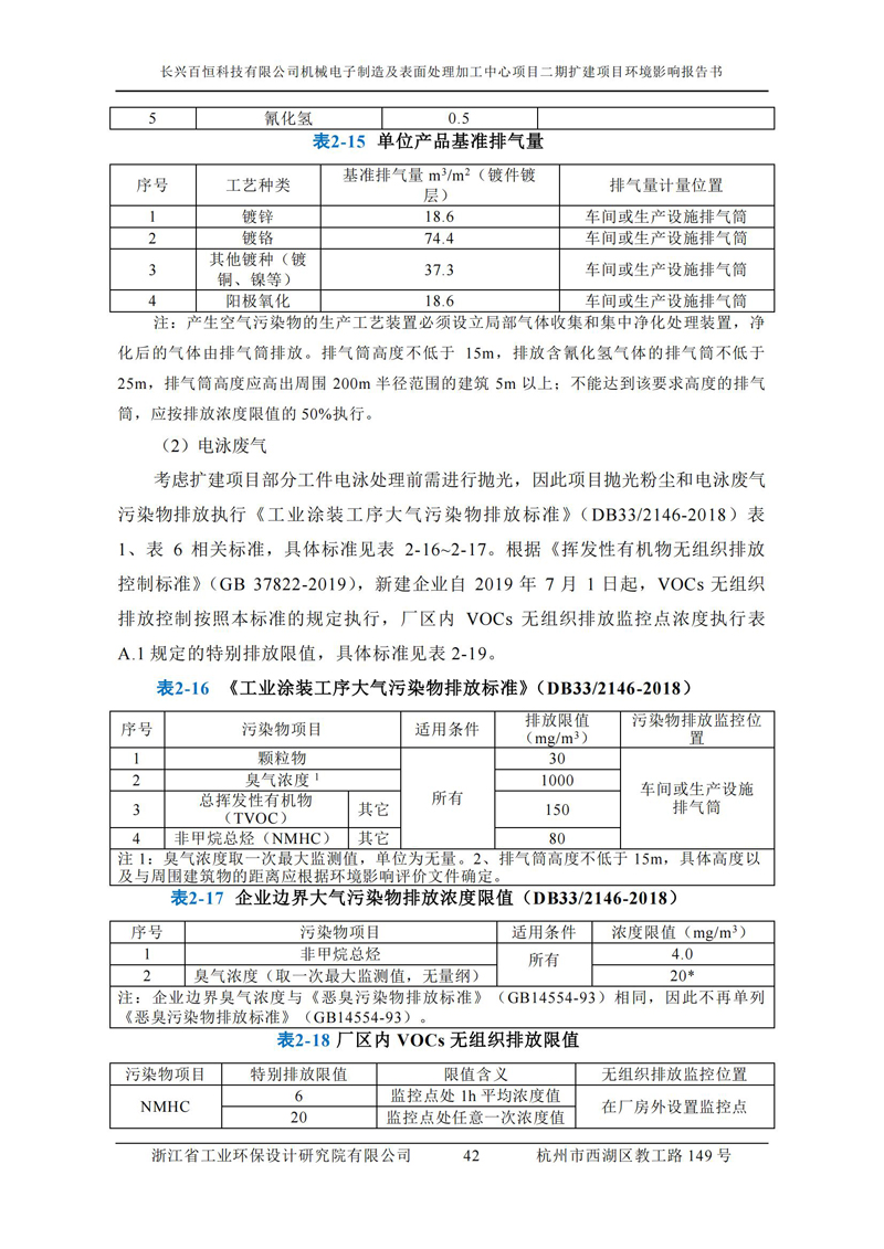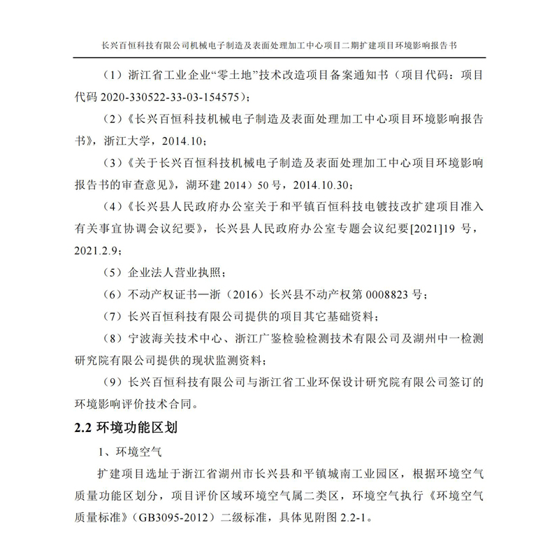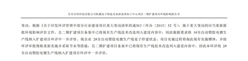 根據要求我公司對長興百恒科技有限公司二期擴建項目環評報告書進行全本公示發布日期:2022/9/26 類別:公司新聞 瀏覽量: 2825 根據《浙江省建設項目環境保護管理辦法(2018年修正)》及相關要求,我公司對長興百恒科技有限公司機械電子制造及表面處理加工中心項目二期擴建項目環境影響報告書進行全本公示